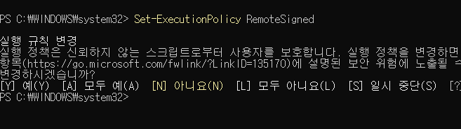 Windows PowerShell์์ ๋ค์๊ณผ ๊ฐ์ ๋ช ๋ น์ด๋ฅผ ์ํํ๋ฉด ํด๊ฒฐ๋๋ค.