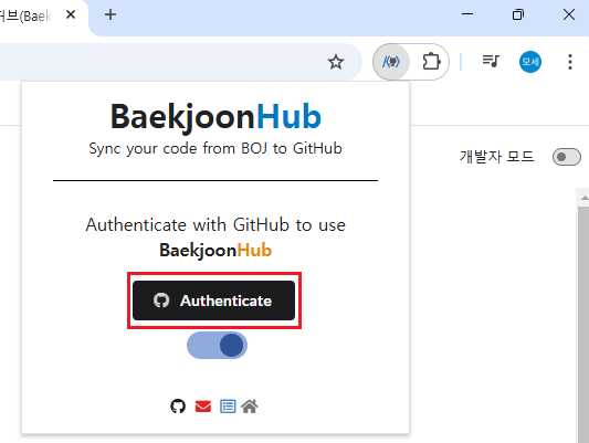 3. Authorize BaekjoonHub ํด๋ฆญ > ๋ณ๊ฒฝ ๋ ํฌ์งํ ๋ฆฌ ์ด๋ฆ ์ ๋ ฅ